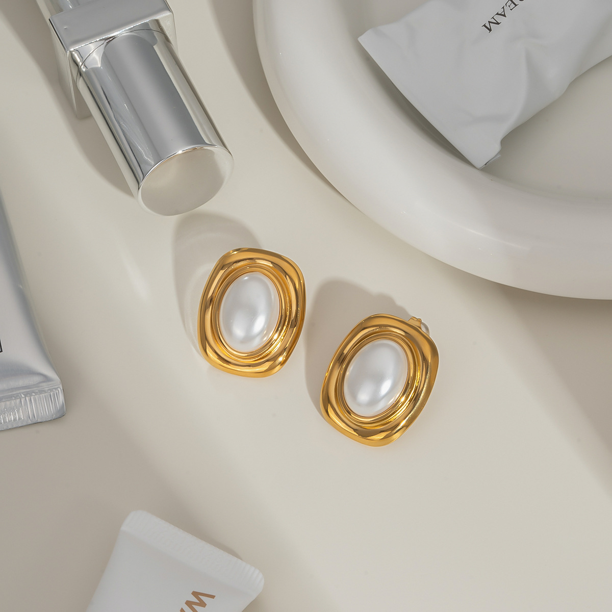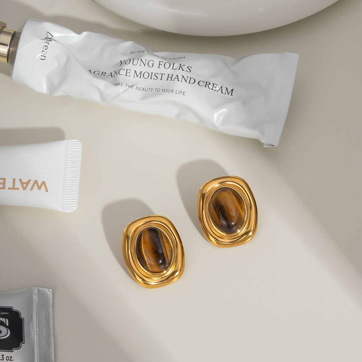 Vintage Natural Stone Inlaid Stainless Steel Stud Earrings, Fade-Resistant & Hypoallergenic for Women Daily Wear