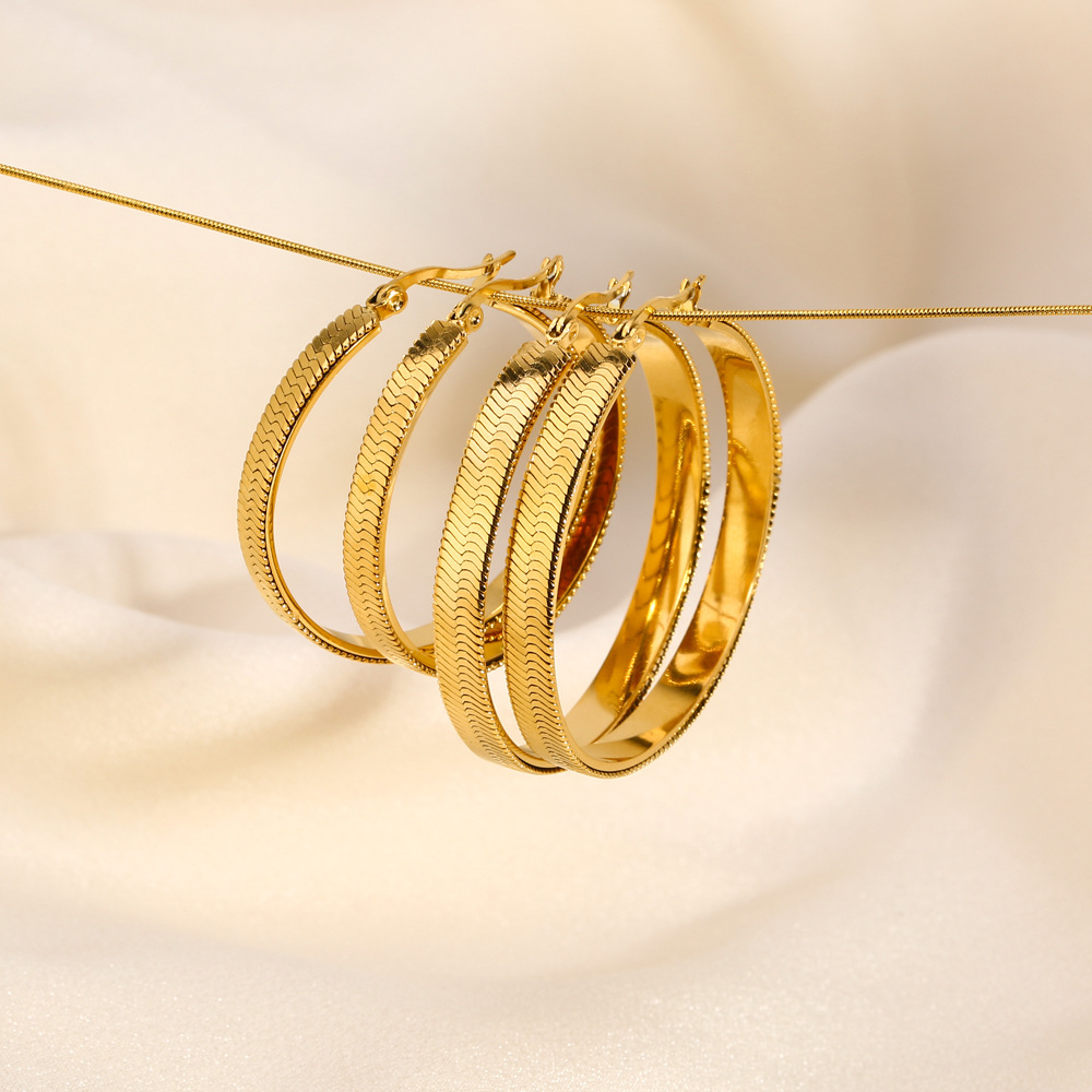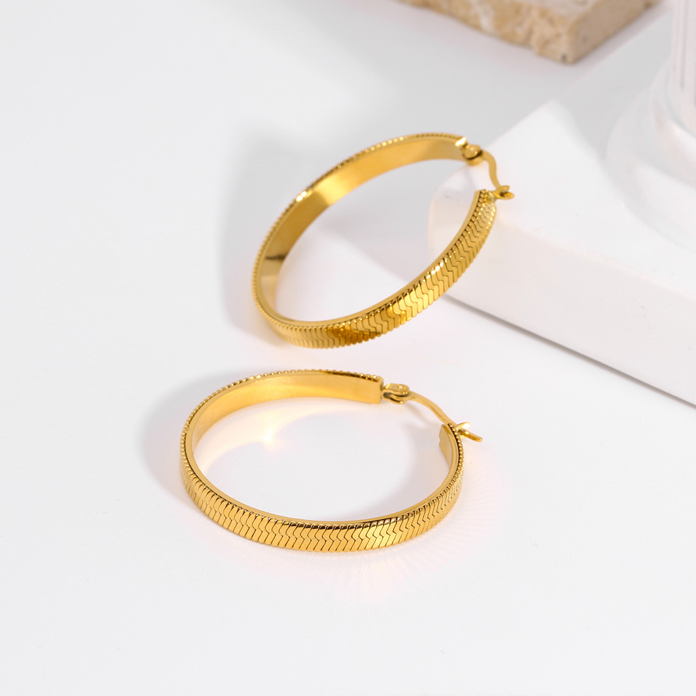 Fashionable women's earrings 18K gold stainless steel snake chain exaggerated personality circle earrings