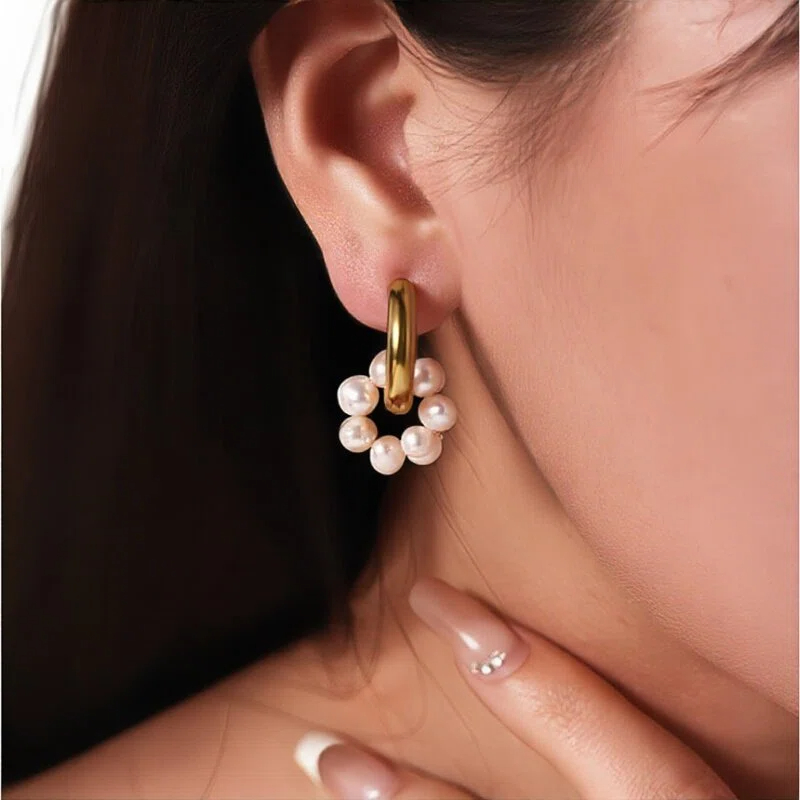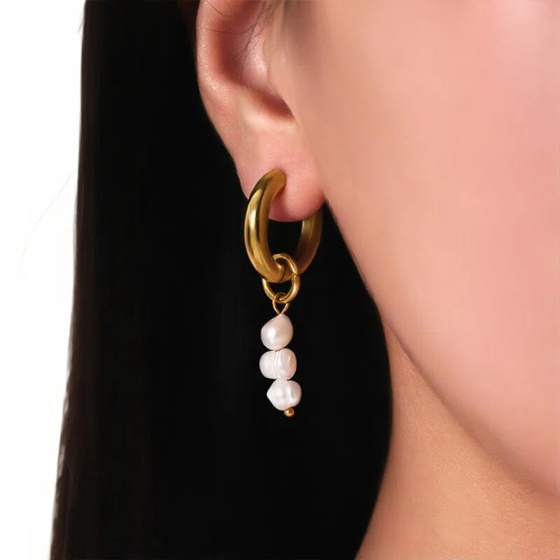 Freshwater Pearl Hoops Stainless Steel Earrings 18K Gold-plated Non-fading Jewelry for Wholesale
