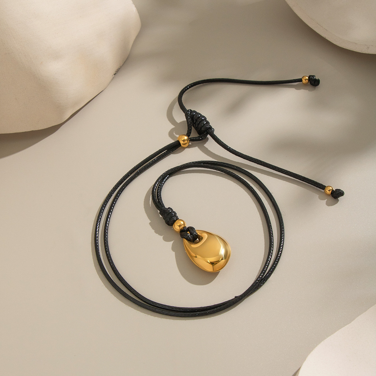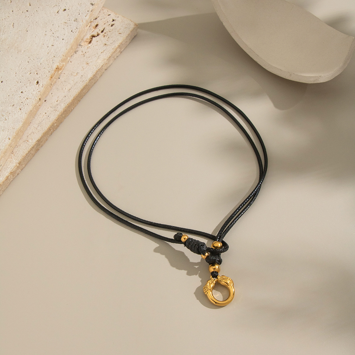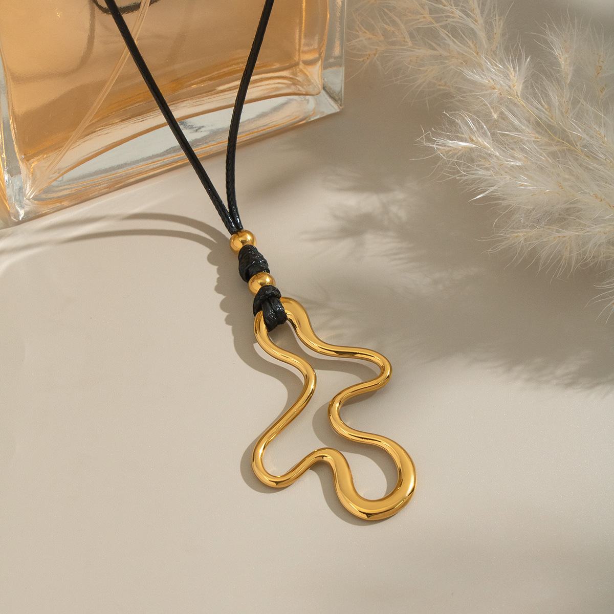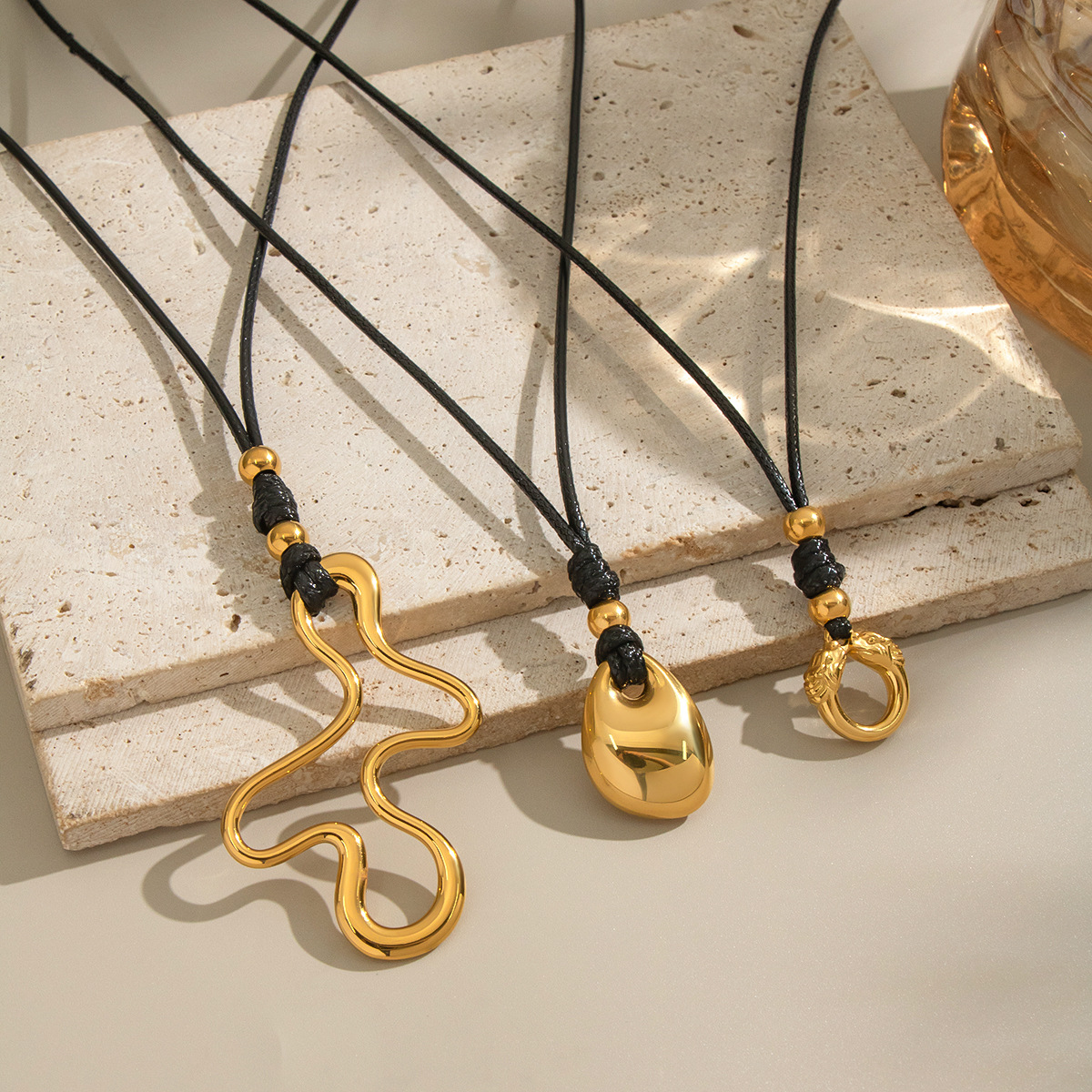 Irregular Pendant Leather Cord Stainless Steel 18K Gold Necklace for Women
