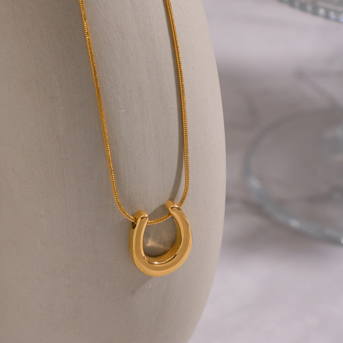 Minimalist 18K Gold Plated U-Shaped Horseshoe Stainless Steel Pendant Necklace | Versatile Jewelry for Women