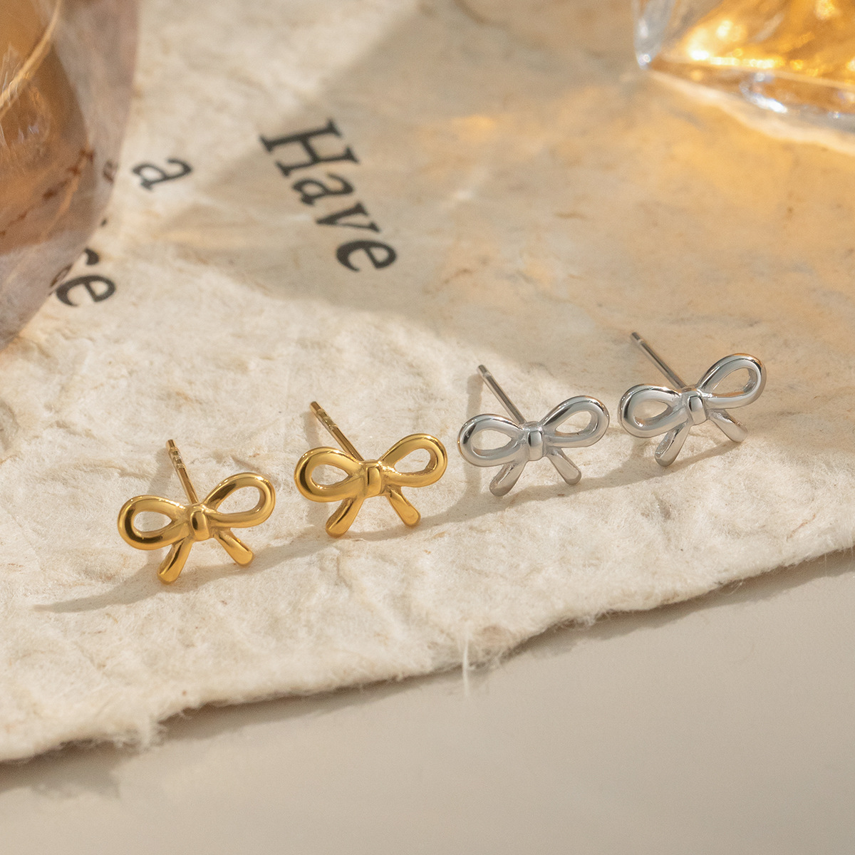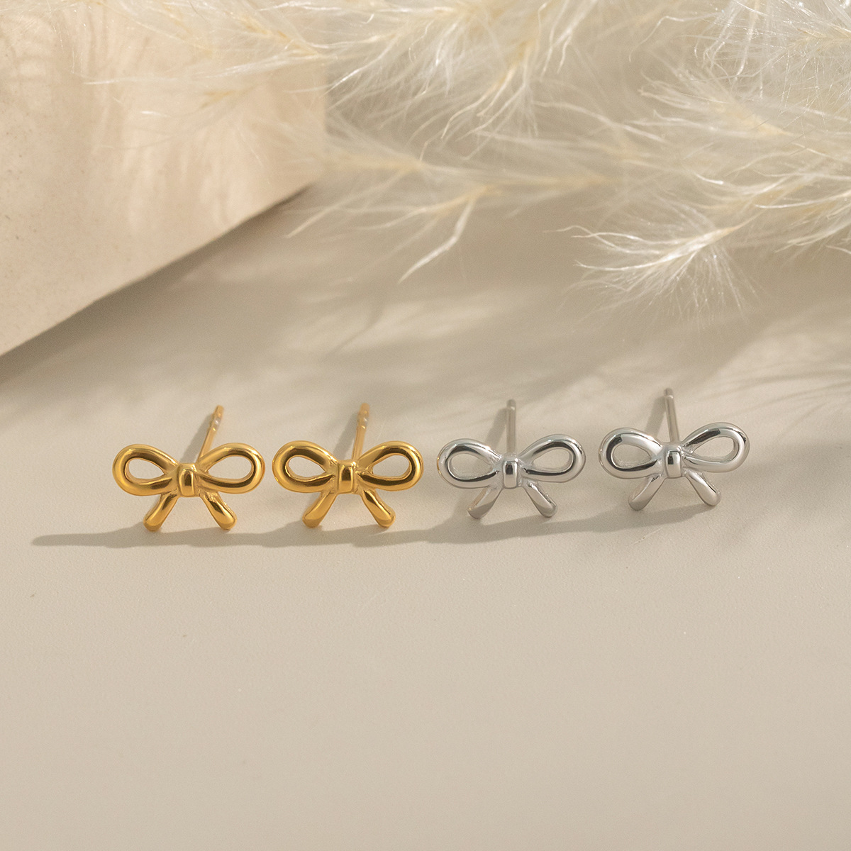 Minimalist Bow Stud Earrings - Women's Classic Stainless Steel Jewelry