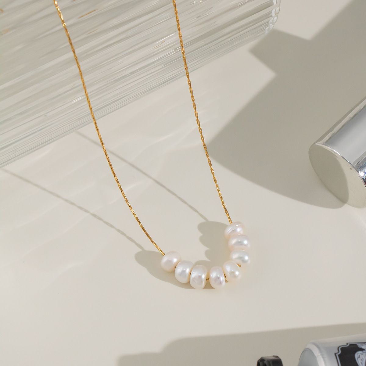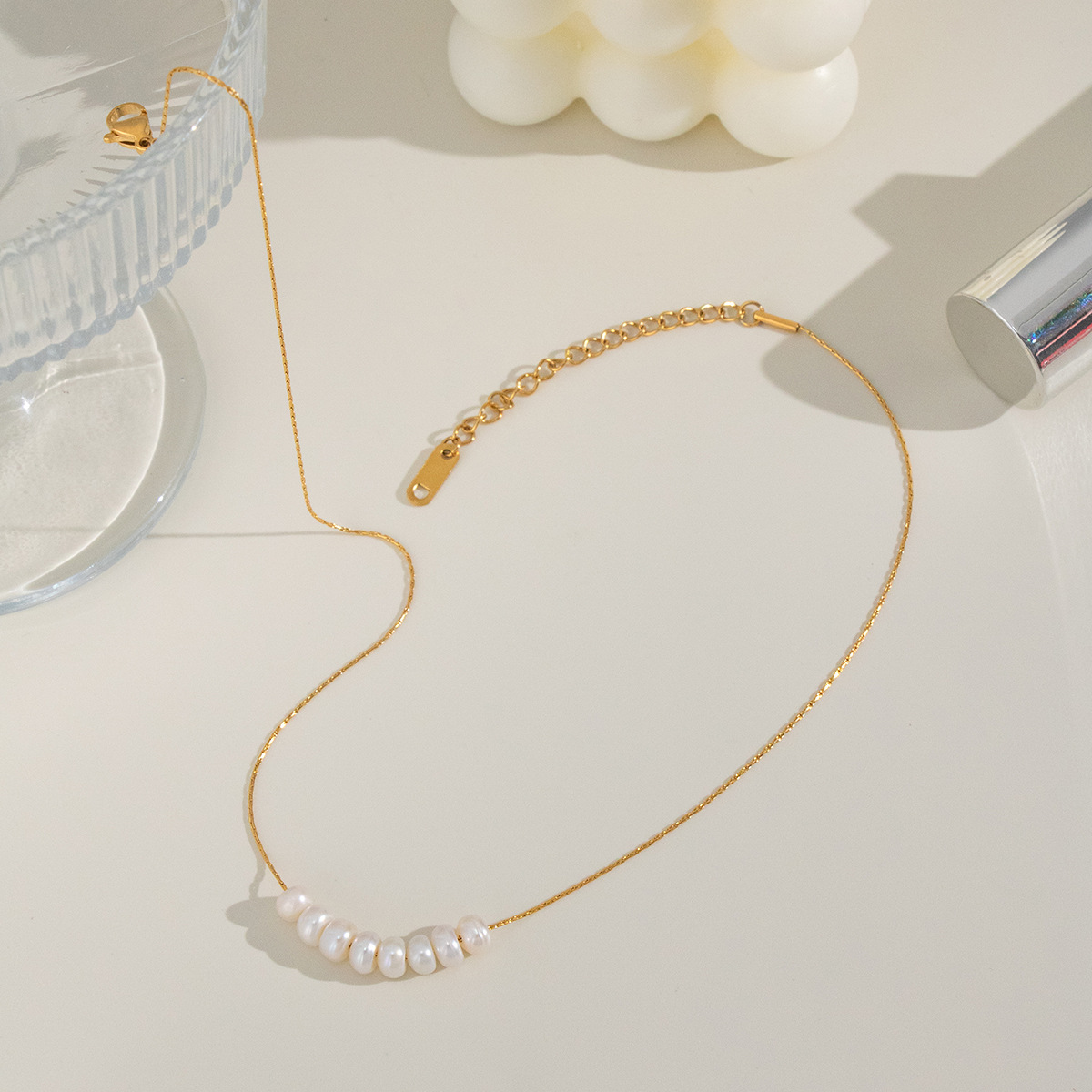 Natural Pearl Choker Necklace - Stainless Steel, Fade-Resistant, Waterproof, Wholesale Available