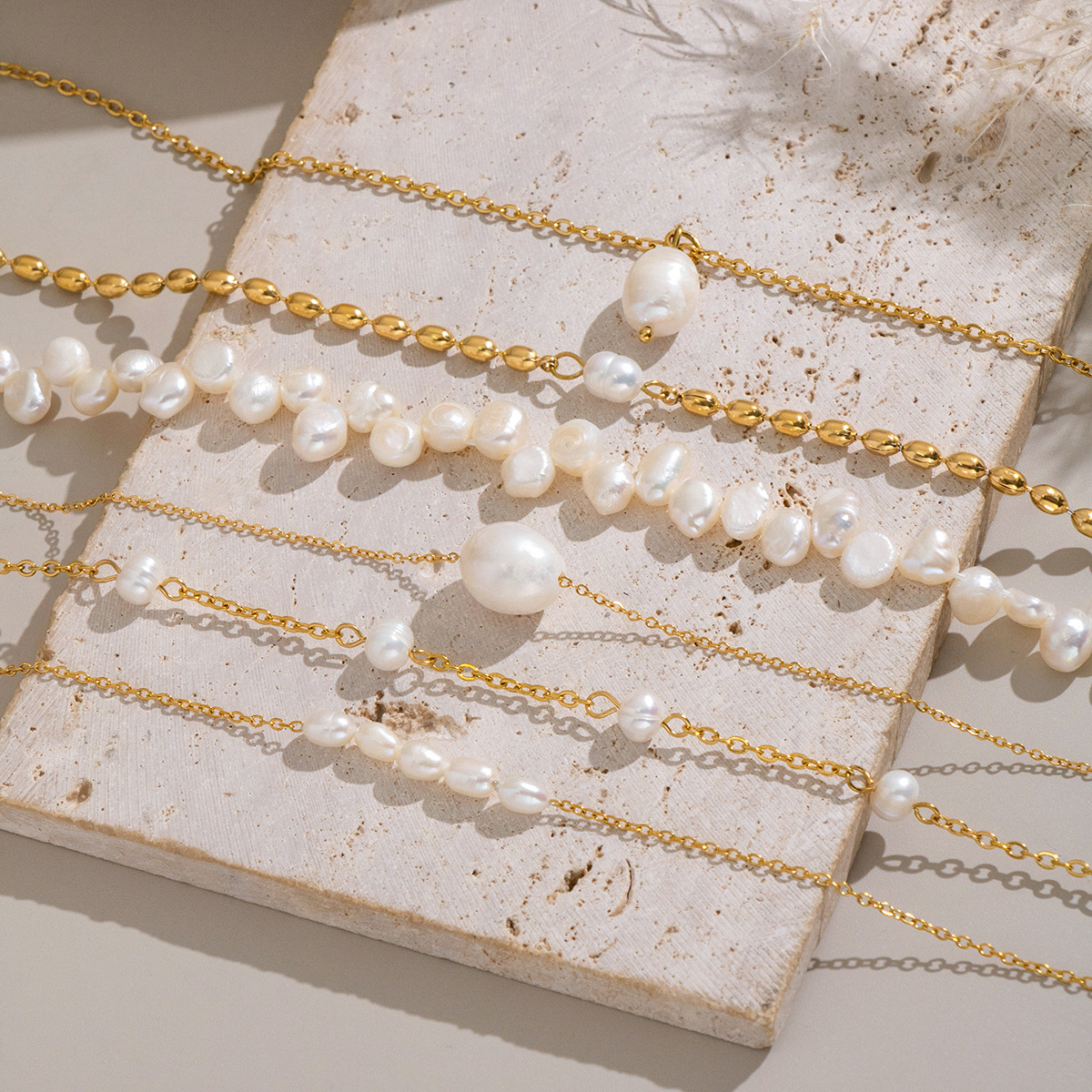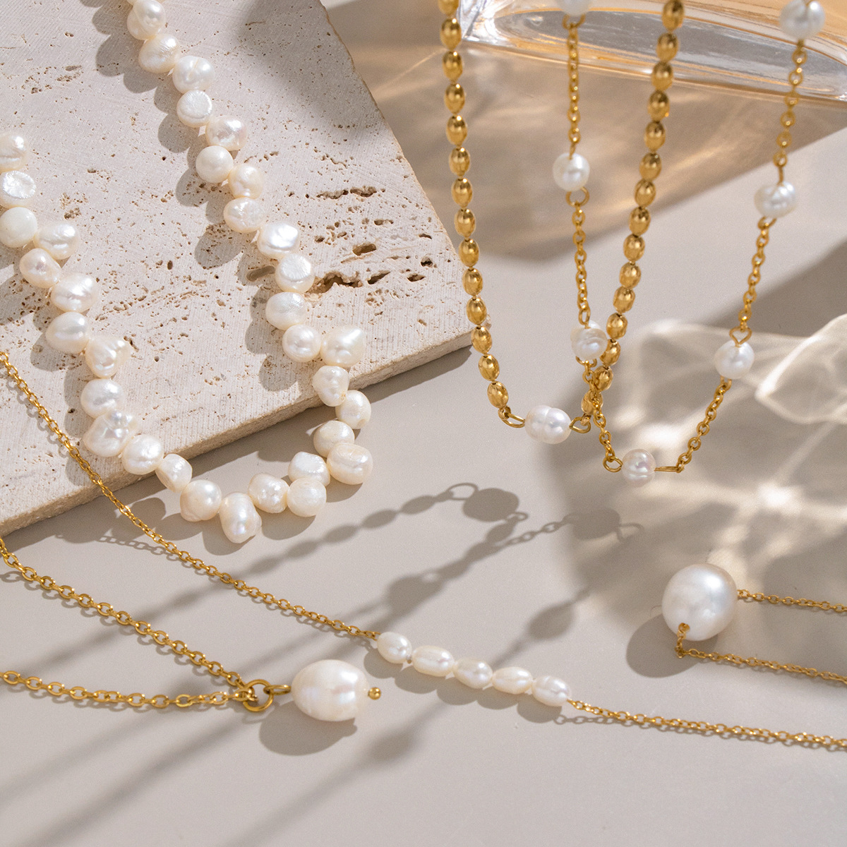 Natural pearl necklace fashion stainless steel waterproof jewelry for women