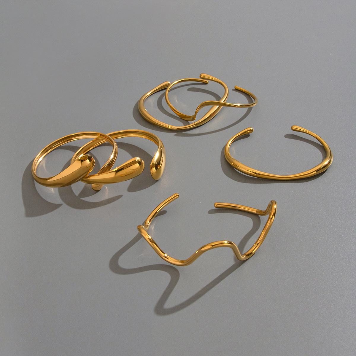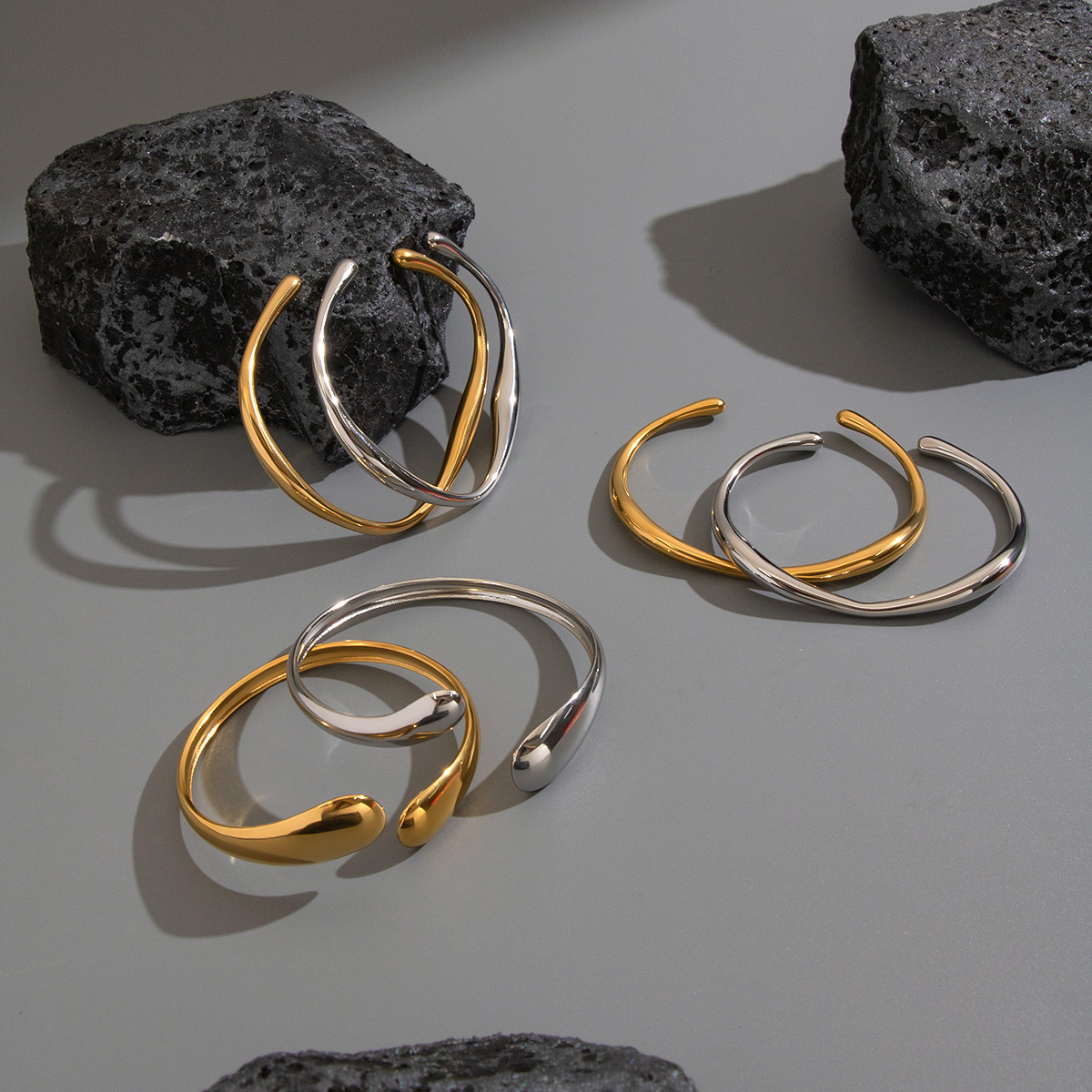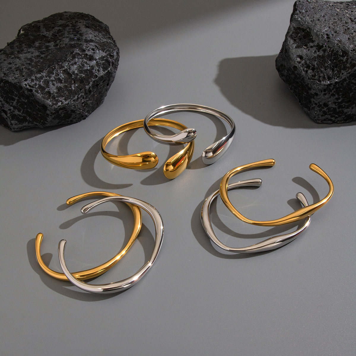 Stainless steel bangle handcrafted fine-polished irregular C-shaped bracelet with PVD plating