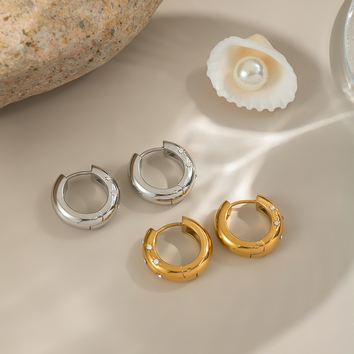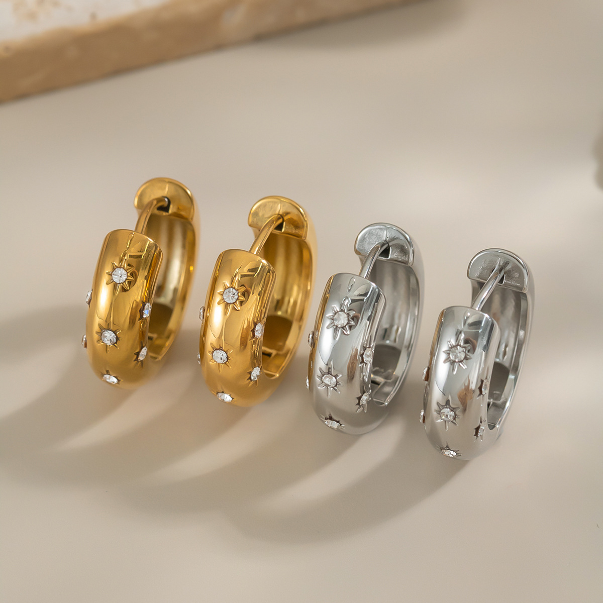 Stainless Steel C Shape Earrings With Stone PVD 18K Gold