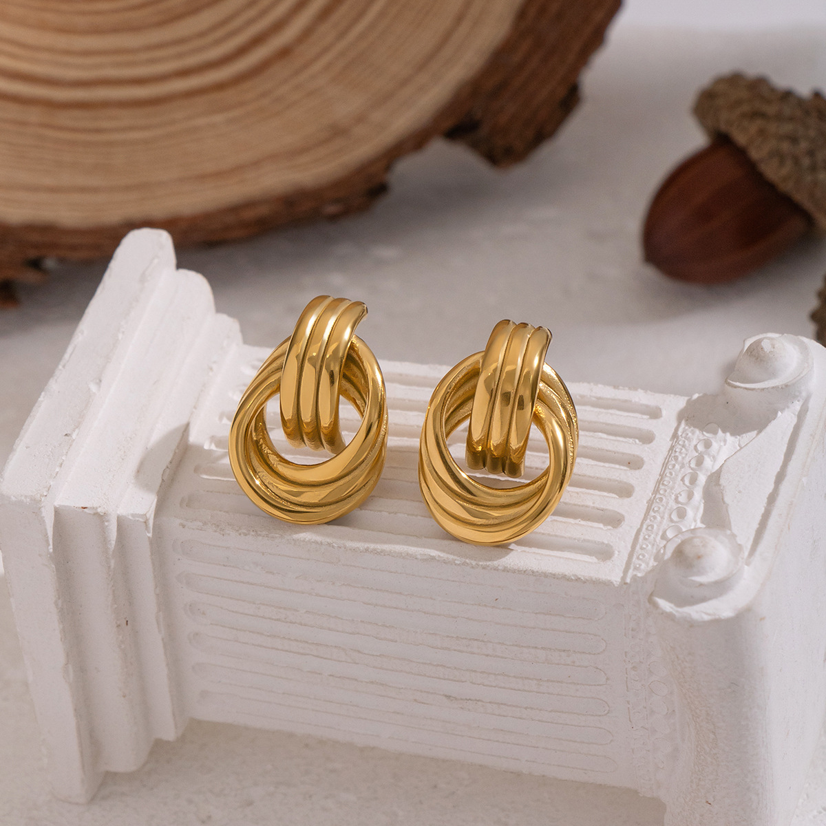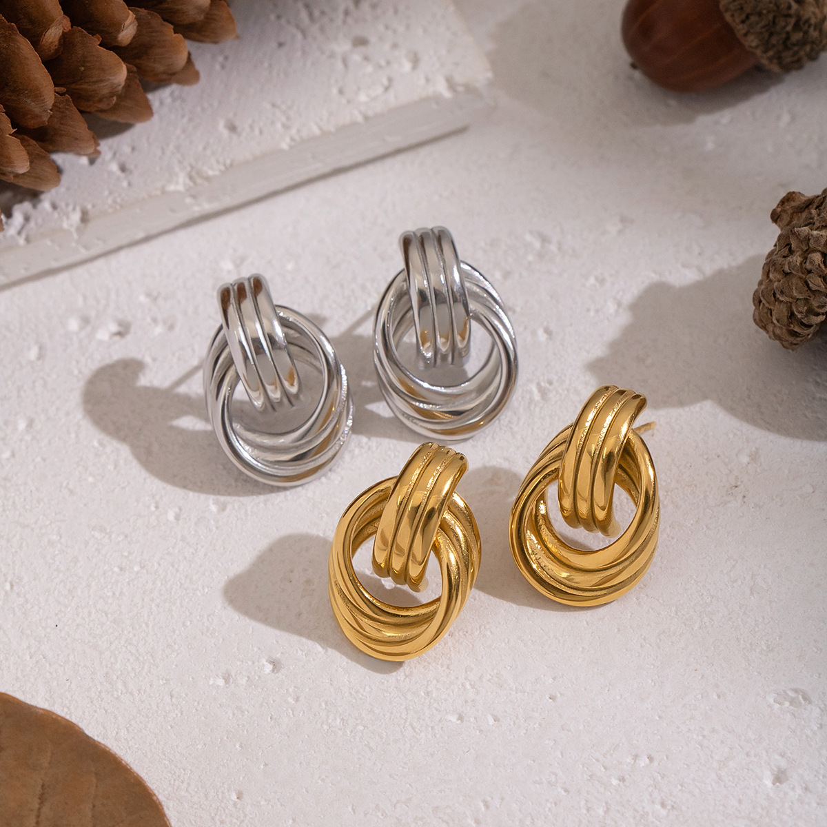 Geometric Line Hoop Stud Earrings - Daily Wear Stainless Steel Jewelry for Women