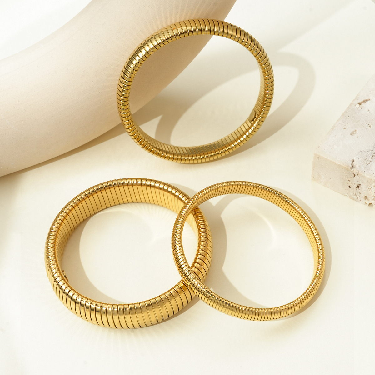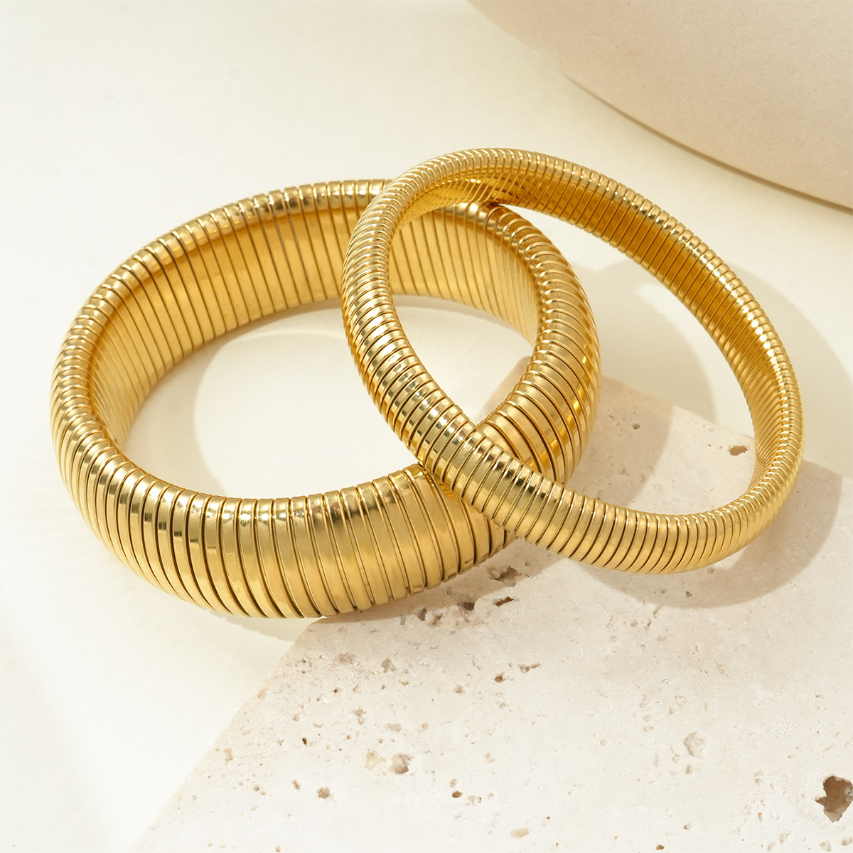 Trendy Simple Spiral Stainless Steel Fashion Bracelet, Elastic Titanium Steel, Niche Vertical Stripe Ring Jewelry